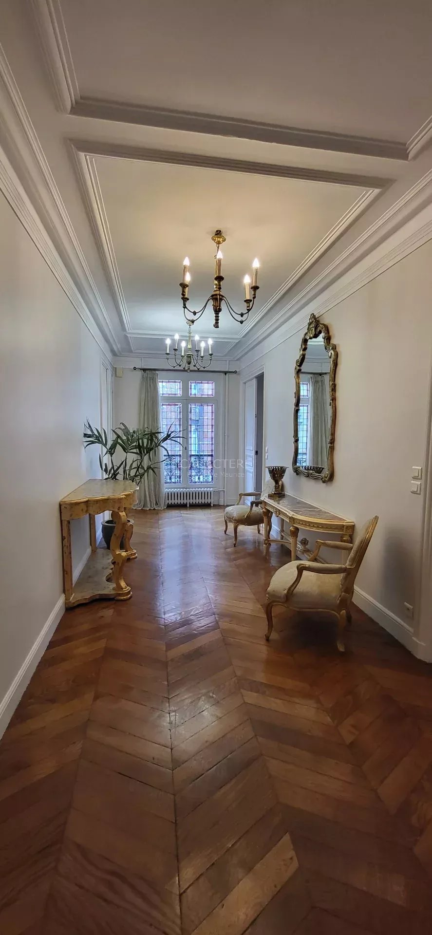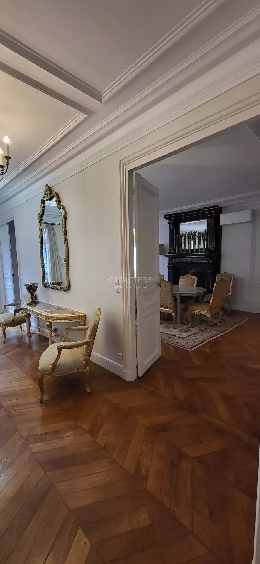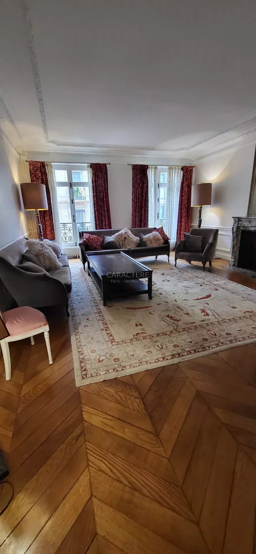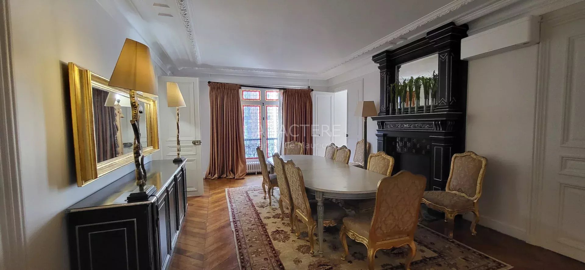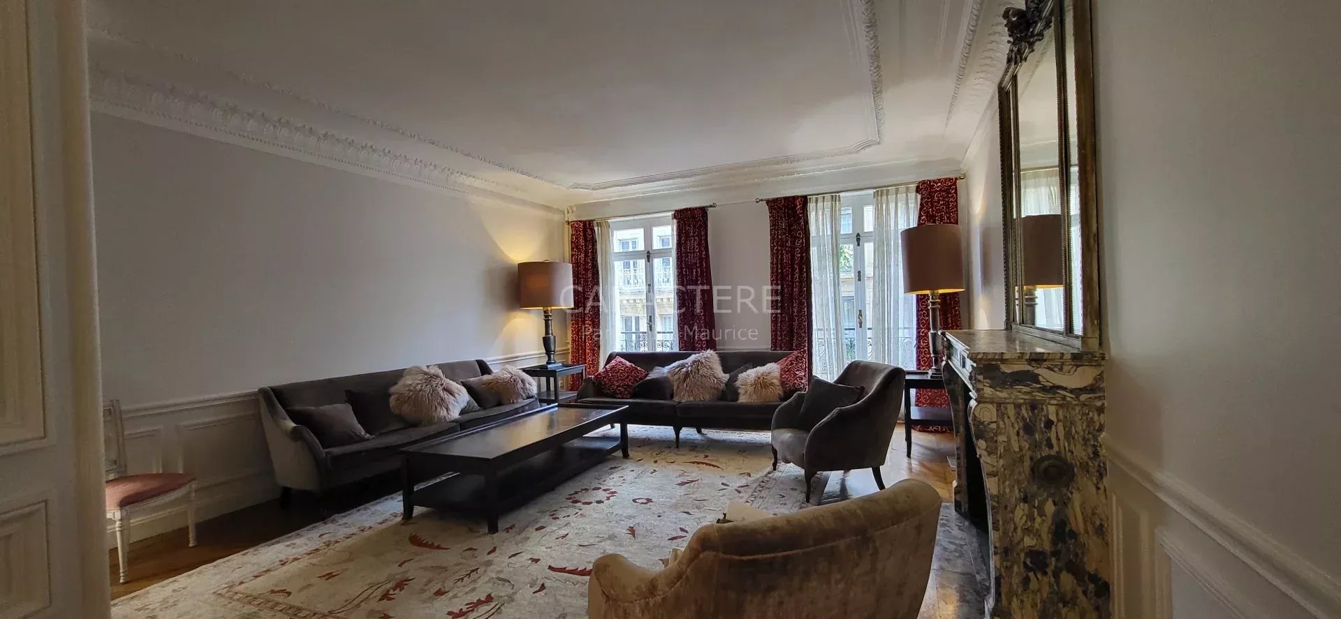 Dans immeuble en pierre de taille avec gardien, très bel appartement meublé, idéalement situé rue Galilée dans le 8ème arrondissement à proximité des stations George V (ligne 1), Kléber (ligne 6) et Charles de Gaulle - Etoile (ligne 1, 2 et 6, RER A).